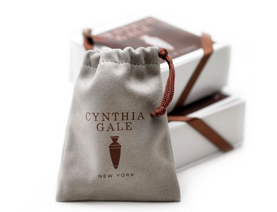 We proudly present our Cynthia Gale New York jewelry pouches! The exterior of the pouch doubles as a cleaning cloth, so that you can keep your CGNY jewelry clean and shiny for all the years of compliments which lie ahead. The pouches are also great for gifting.