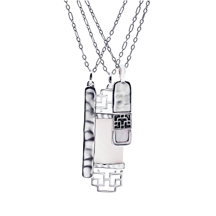 The Cynthia Gale NY sterling silver pendants collection emerged from Cynthia's experiences as a world traveler. As she traveled the world as an international runway model, she was fascinated by the diverse cultures around her. Gale grew intrigued by ancient artisan metalwork techniques and global fine art. This luxury jewelry collection evolved from Gale’s city roots coupled with her distinctive point-of-view in sterling silver.