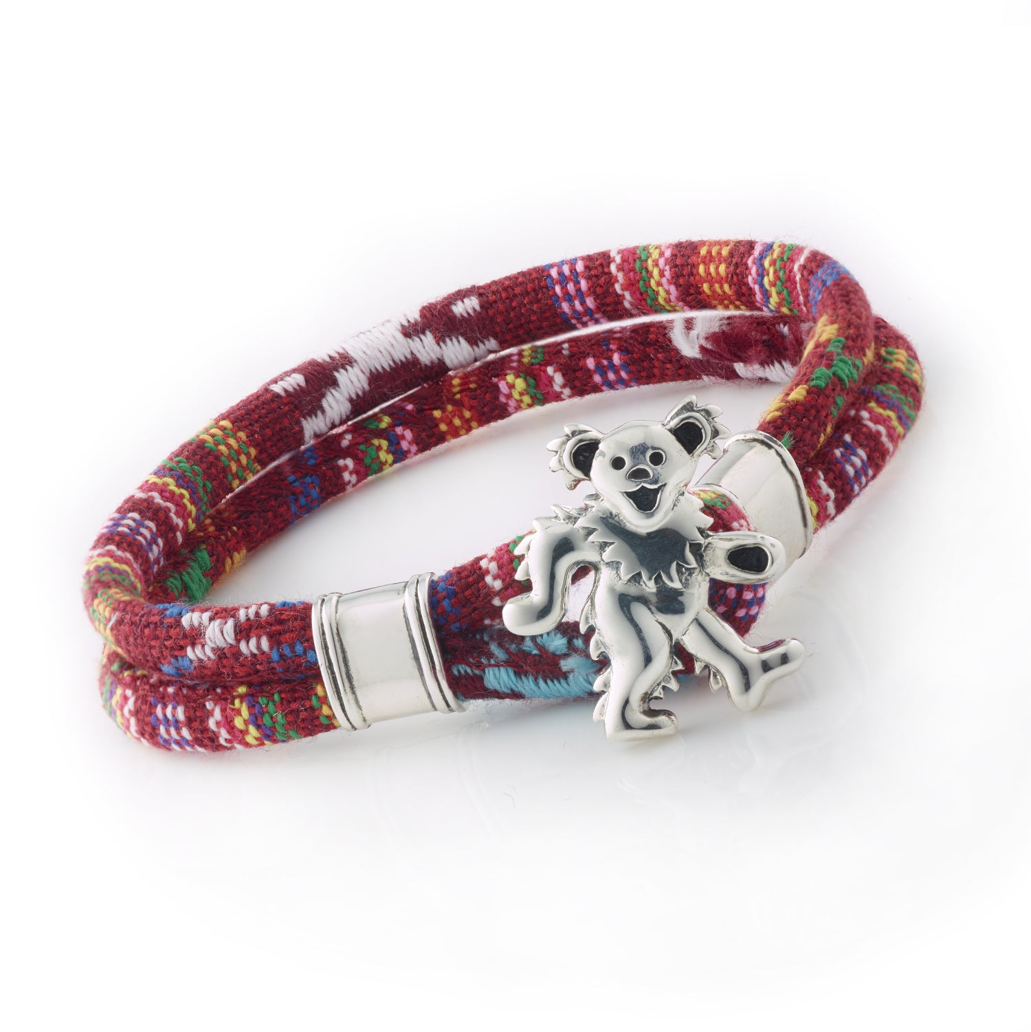 Dancing Bear Sterling Silver Deep Scarlet Cloth Rope Bracelet
