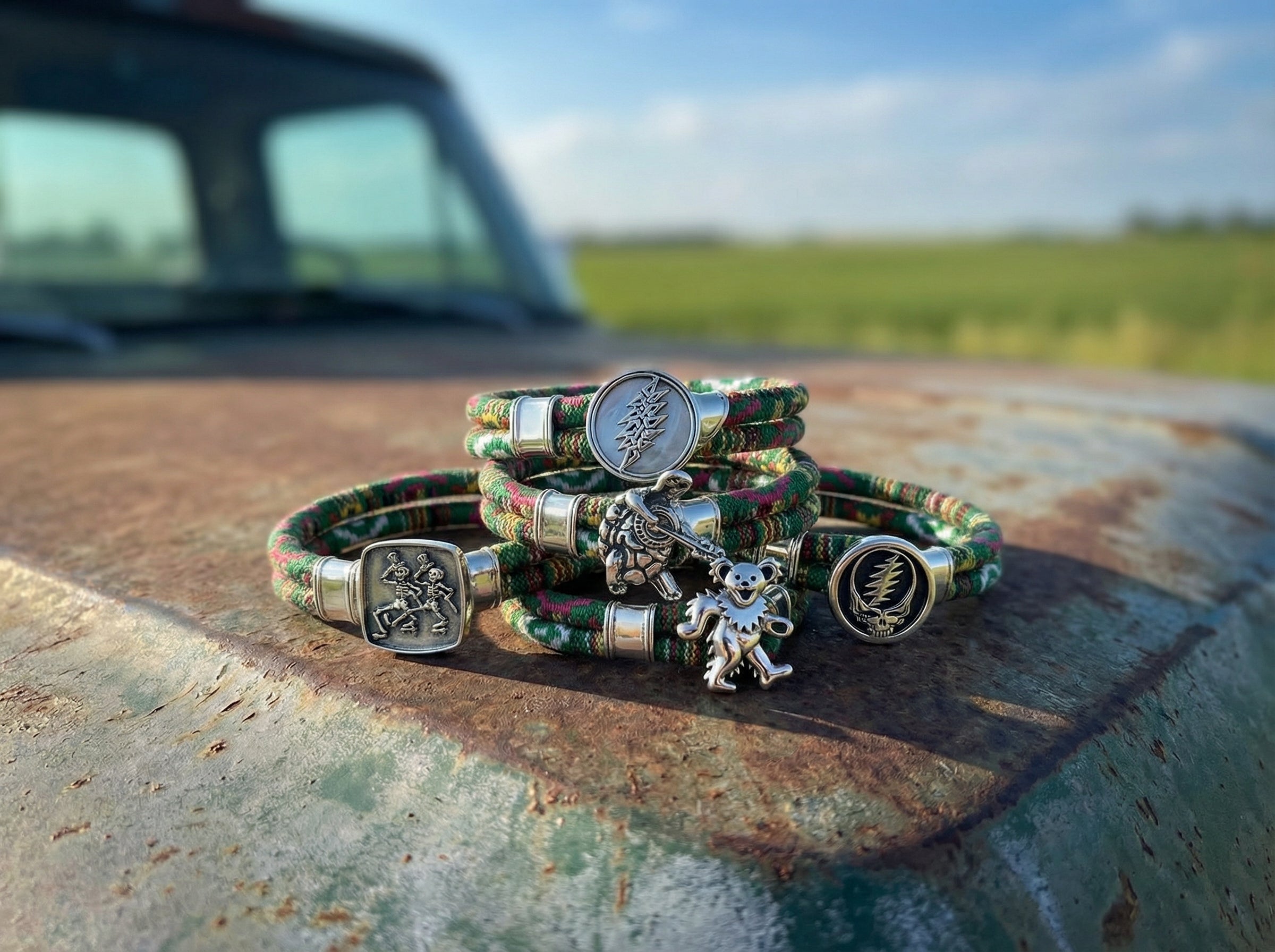 For Saint Patrick’s Day, Cynthia Gale New York introduces the Emerald Road — a limited release of 40 bracelets featuring the unmistakable symbols of the Grateful Dead, rendered in solid .925 sterling silver.